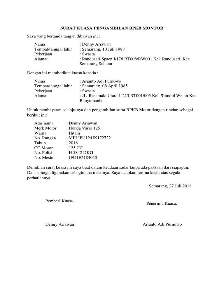 8 contoh surat kuasa pengambilan bpkb motor atau mobil 2019. Jika tidak ada dokumen, kemungkinan besar itu adalah kendaraan curian. Cara bikin surat kuasa ambil bpkb motor. Contoh surat kuasa pengambilan bpkb, foto oleh id wikipedia org bukti kepemilikan kendaraan bermotor (bpkb) adalah salah satu dokumen penting yang wajib dimiliki setiap pemilik kendaraan bermotor. Find out the newest pictures of contoh surat kuasa fif here, so you can have the picture here simply.