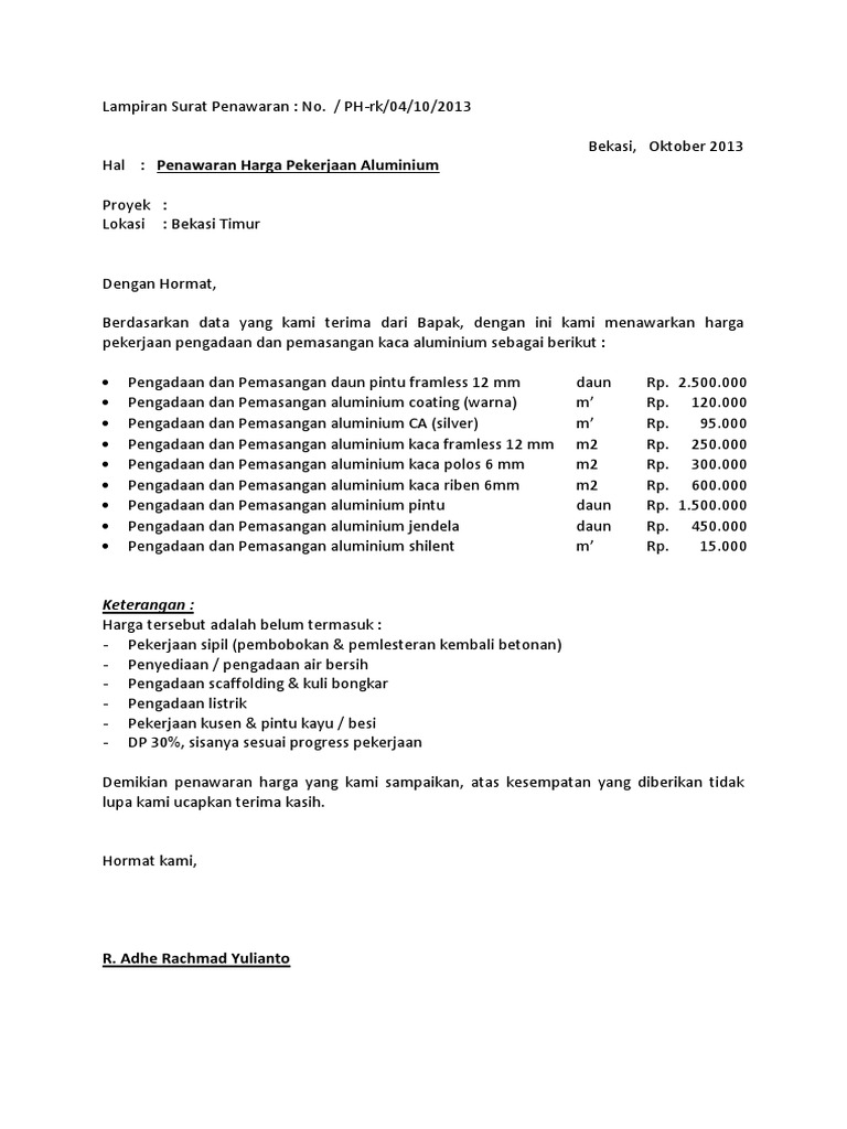 Anda sedang membuka postingan contoh surat penawaran harga tanah yang berada pada kategori contoh surat dengan tag postingan berikut contoh surat. Membuat surat penawaran barang dapat memudahkan para penjual untuk menawarkan barang dagangannya. Surat penawaran harga bisa juga disebut sebagai alat pemasaran suatu produk atau jasa. Surat penawaran harga adalah salah satu jenis surat yang dikenal dalam dunia bisnis. Tujuan dibuat surat penawaran ini.